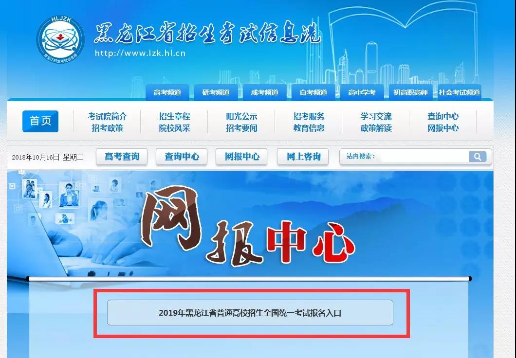 ② 点击2019年黑龙江普通高校招生全国统一考试报名系统