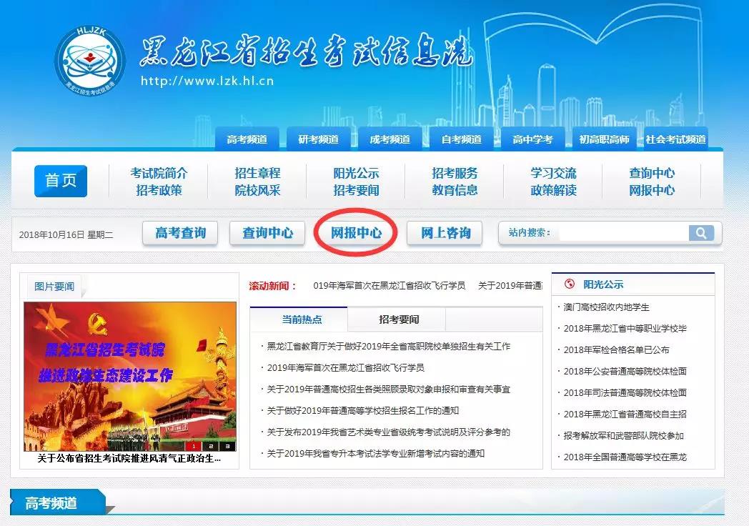 步骤一:登陆黑龙江省招生考试信息港(www.lzk.hl.cn )进行信息注册、填报基本信息及缴费。